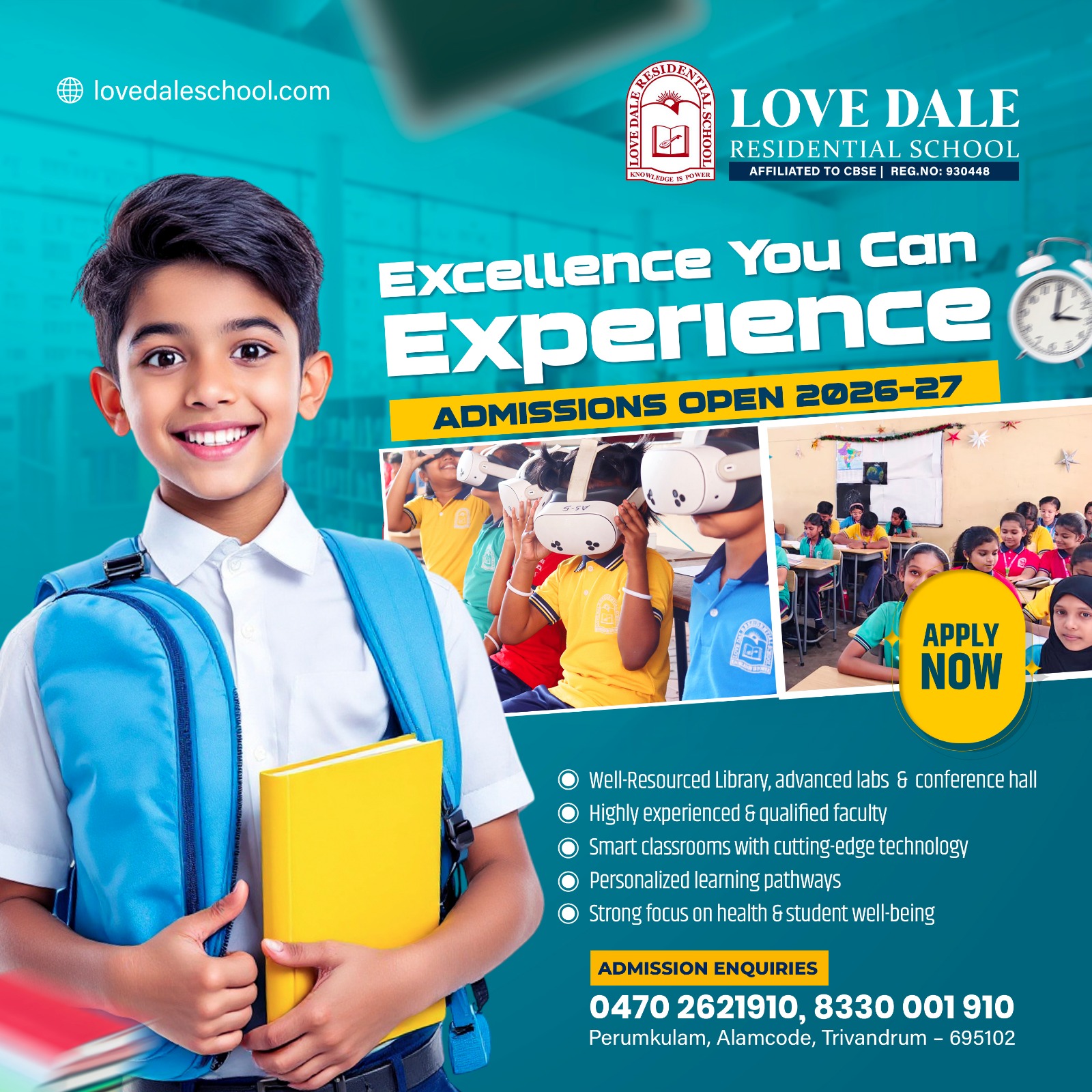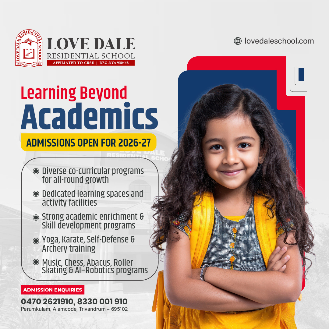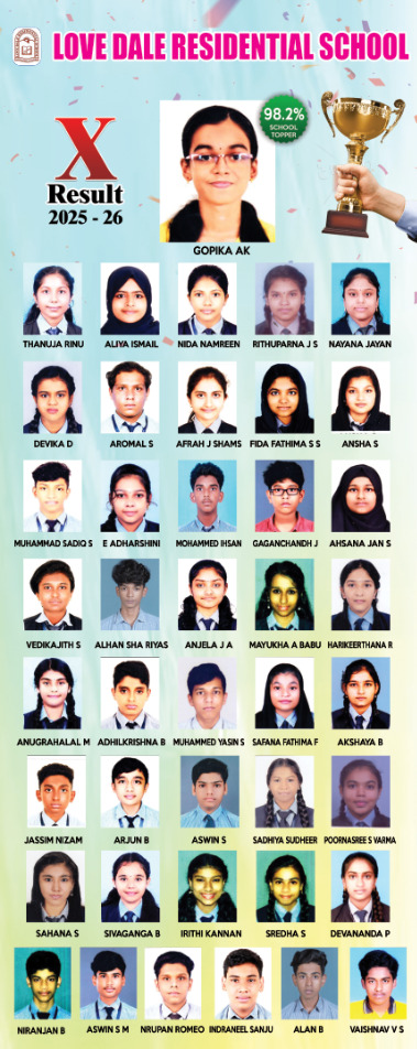 Situated in a beautiful hilly area, just 4 km away from Attingal town, Love Dale Residential School provides an ideal campus for the learning and general development of students. A school with a difference, a new beacon of light. At Love Dale Residential School every child shall be molded into independent, self-reliant, responsible citizens with competitive skills to meet the challenges of the outside world. From the school assembly in the morning, through the teaching-learning process, to the co-curricular activities, it is a unique educational experience for the pupils.